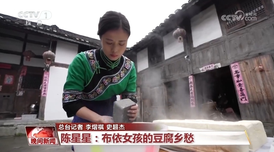 在貴州省貴陽(yáng)市烏當(dāng)區(qū)偏坡布依族鄉(xiāng),陳星星正在錄制最新一期短視頻,通過(guò)布依族山歌推廣市級(jí)非遺豆制品制作技藝。在當(dāng)?shù)?,豆腐的做法多種多樣:搗碎、糅團(tuán)、油炸、加入折耳根,豆腐圓子外焦里嫩。切薄塊、擺盤(pán)、佐以豬耳,鹵豆腐拼盤(pán)口味豐富。此外還有農(nóng)家三寶、絲絲相扣、木耳豆腐等菜式。2023年,碩士畢業(yè)的陳星星,沒(méi)有像鄉(xiāng)親們預(yù)期的那樣,考個(gè)城里體面的工作,而是戴上圍裙、挎上竹籃,回到群山環(huán)抱的家鄉(xiāng),做起了灰豆腐事業(yè)。