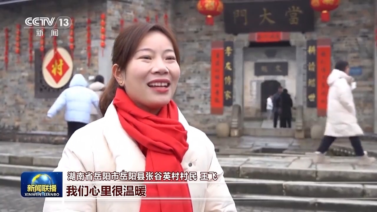 湖南省岳陽市岳陽縣張谷英村村民 王飛:總書記關(guān)心我們基層群眾年過得好不好,我們心里很溫暖,現(xiàn)在游客都愿意來,感受我們村的古韻和文化。對(duì)于來年的日子,我們大家都充滿信心,把日子過得更好。