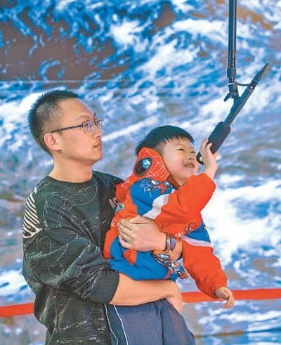 市民在北京城市圖書館元宇宙體驗(yàn)館內(nèi)游玩。