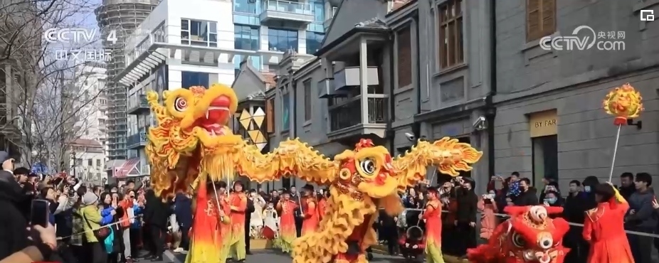在上海的大街小巷,舞龍舞獅、光影秀等各類新春活動(dòng)陸續(xù)登場(chǎng),讓市民游客感受龍年的歡騰圖景。一大早,隨著鑼鼓聲激昂開場(chǎng),一條金龍和兩頭活潑的醒獅在上海市茂名北路威武亮相。龍獅團(tuán)成員們舞動(dòng)一條長(zhǎng)約30米的巨龍?jiān)诮质猩洗┧笥巫?,吸引了不少市民游客駐足觀看。