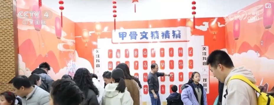 博物館內(nèi)的漢字展、漢服秀、甲骨文韻律操、文創(chuàng)集市等豐富多彩的節(jié)目,也給游客帶來(lái)了不一樣的新春體驗(yàn)和感受。識(shí)讀甲骨文,能讓大家對(duì)漢字演變過(guò)程有更加直觀的認(rèn)識(shí)和了解,在“甲骨文猜猜猜”游戲中,游客們認(rèn)真觀察、思考展板上一個(gè)個(gè)甲骨文所對(duì)應(yīng)的漢字,感受著古人的智慧和漢字的靈性與博大。