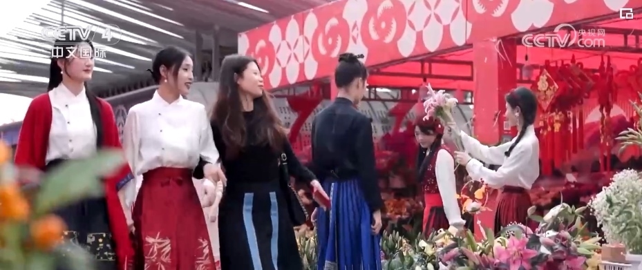 新春佳節(jié),添置一身新衣辭舊迎新,是很多人過(guò)年的儀式感。在廣東、福建等地街頭大大小小的“花市”上,馬面裙與五彩斑斕的鮮花相互映襯,成為龍年新春的一道亮麗風(fēng)景。