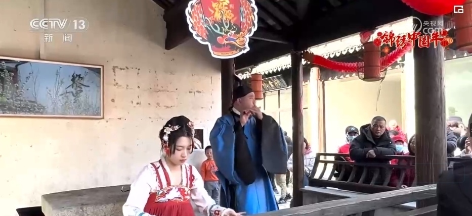 春節(jié)期間,伴隨著陣陣《茉莉花》的悠揚(yáng)樂(lè)聲,在江南水鄉(xiāng)黎里古鎮(zhèn)的迎恩坊,游客市民欣賞演奏團(tuán)隊(duì)奏響的新年歡樂(lè)樂(lè)章。石板道兩旁都換上了喜慶的紅色裝飾,糖畫攤、丟圈兒游戲的攤位前擠滿了躍躍欲試的人群。這幾天,黎里古鎮(zhèn)已經(jīng)迎來(lái)超過(guò)5萬(wàn)名游客,較2023年同期翻了兩番。