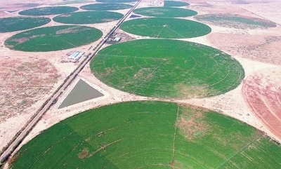 內(nèi)蒙古自治區(qū)加快推進國土綠化,“三北”工程攻堅戰(zhàn)和三大標志性戰(zhàn)役進展順利。截至2023年底,累計完成造林556萬畝、種草1743萬畝、防沙治沙950萬畝。圖為烏蘭布和沙漠苜蓿種植基地。新華社記者 李云平攝