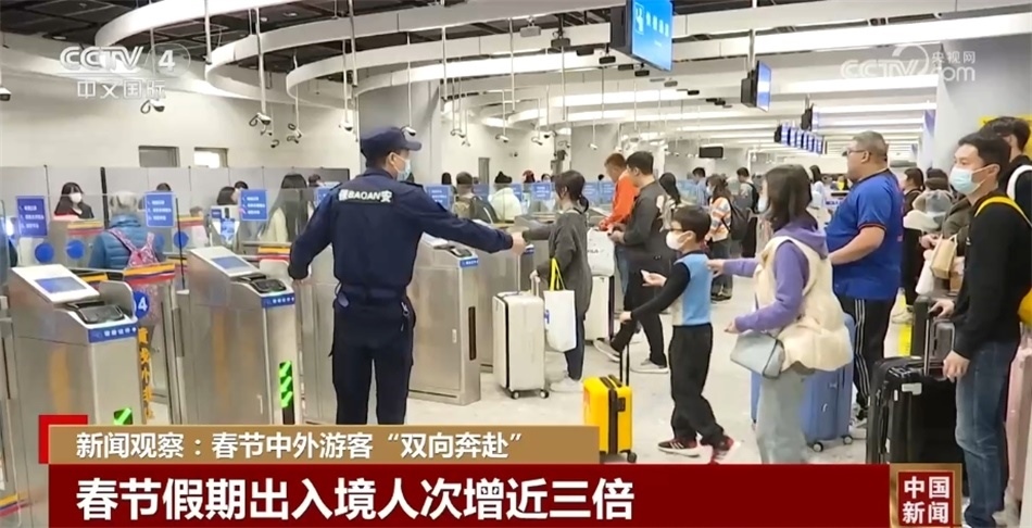 央視網(wǎng)消息:隨著中國(guó)“免簽朋友圈”擴(kuò)容,今年春節(jié)中外游客“雙向奔赴”,出境游、入境游訂單均超過(guò)2019年同期,出境游同比增長(zhǎng)近10倍,入境游約323萬(wàn)人次。龍年春節(jié)讓世界看到了中國(guó)經(jīng)濟(jì)的活力,提振了全年市場(chǎng)預(yù)期與信心。