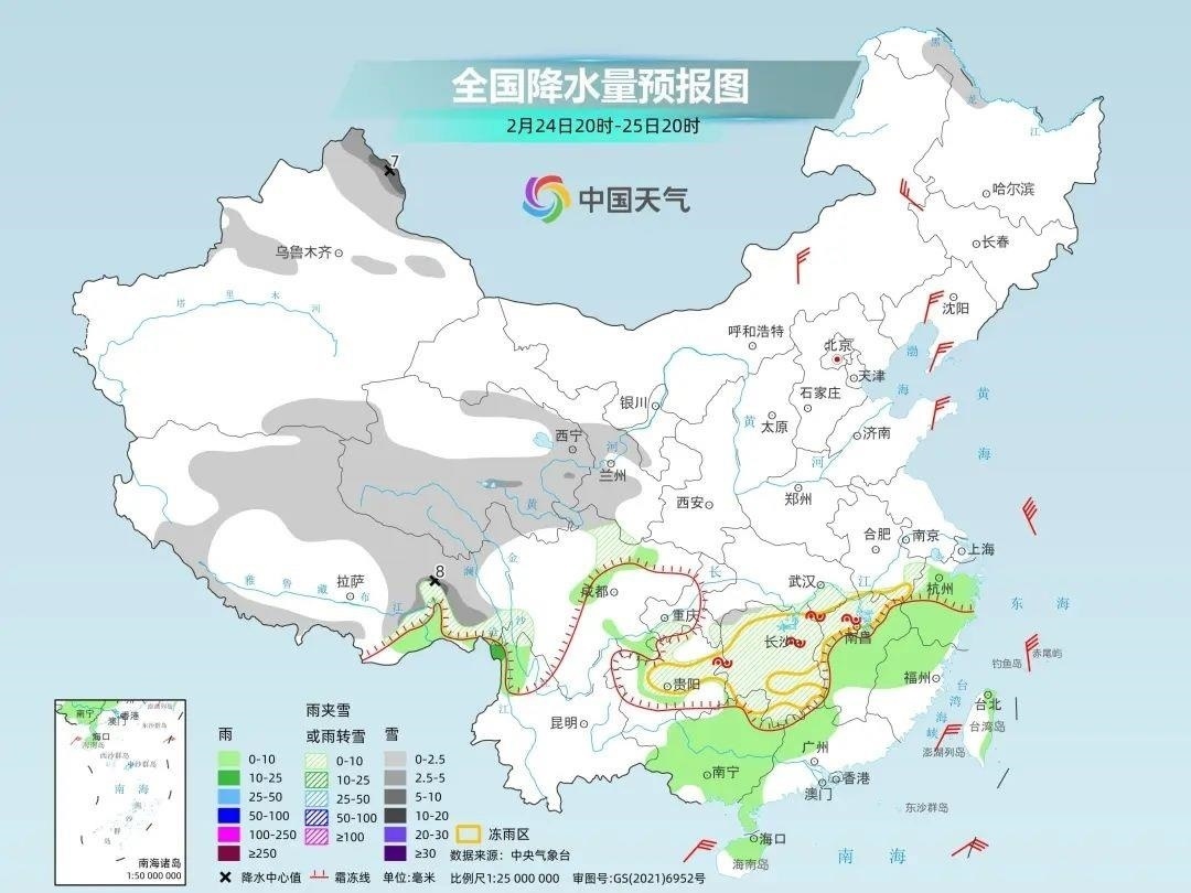 據中央氣象臺中期預報,未來10天,江淮、江漢、江南、華南西部及貴州等地多陰雨天氣,累計降水日數可達5至7天。其中,今明天貴州中東部、湖南、江西西北部、安徽南部等地的部分地區(qū)有凍雨或冰粒,凍雨量0.5至2毫米,局地3毫米以上。