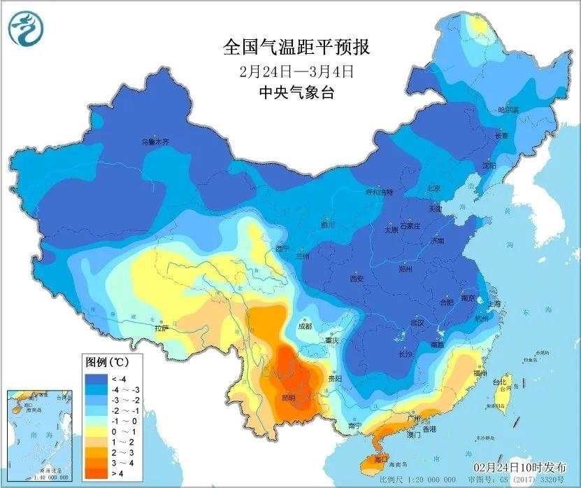 其中,今起至27日,黃淮南部、江淮中西部、江漢、江南中西部、華南西部、貴州大部、四川盆地以及新疆北部、內蒙古西部、甘肅西部等地的日平均氣溫或最低氣溫較常年同期偏低5至7℃,湖北中東部、湖南、貴州東部、廣西北部等地部分地區(qū)偏低7℃以上,其間最低氣溫0℃線將位于浙江中北部、江西北部至湖南南部、貴州南部一帶。