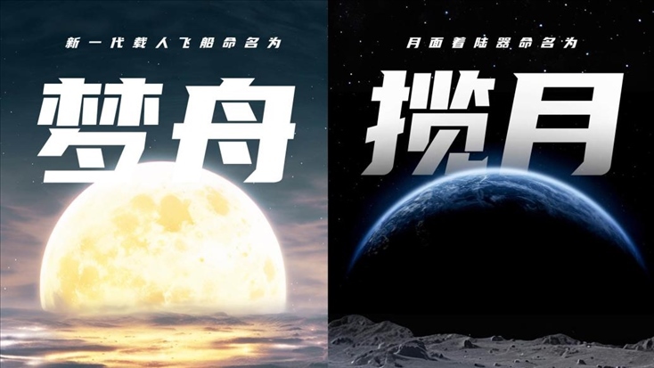 ·中國載人月球探測任務(wù)新飛行器名稱正式確定,新一代載人飛船命名為“夢舟”,月面著陸器命名為“攬月”。