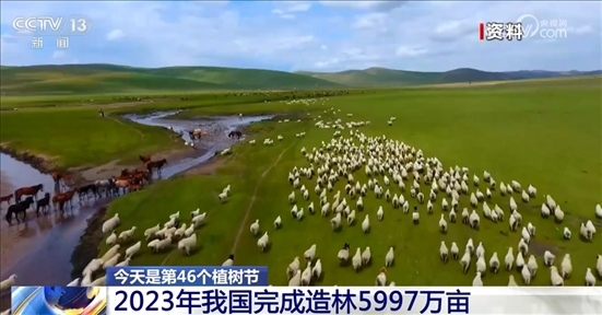 全國綠化委員會辦公室公布的《中國國土綠化狀況公報》顯示,2023年,我國完成造林5997萬畝,種草改良6568.5萬畝,治理沙化石漠化土地2857.5萬畝。