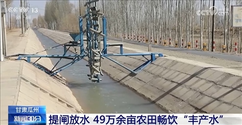在甘肅瓜州,隨著疏勒河流域灌區(qū)引水閘閘口開啟,各灌區(qū)陸續(xù)提閘放水,讓49萬余畝農田按時足量喝上開春“豐產水”。