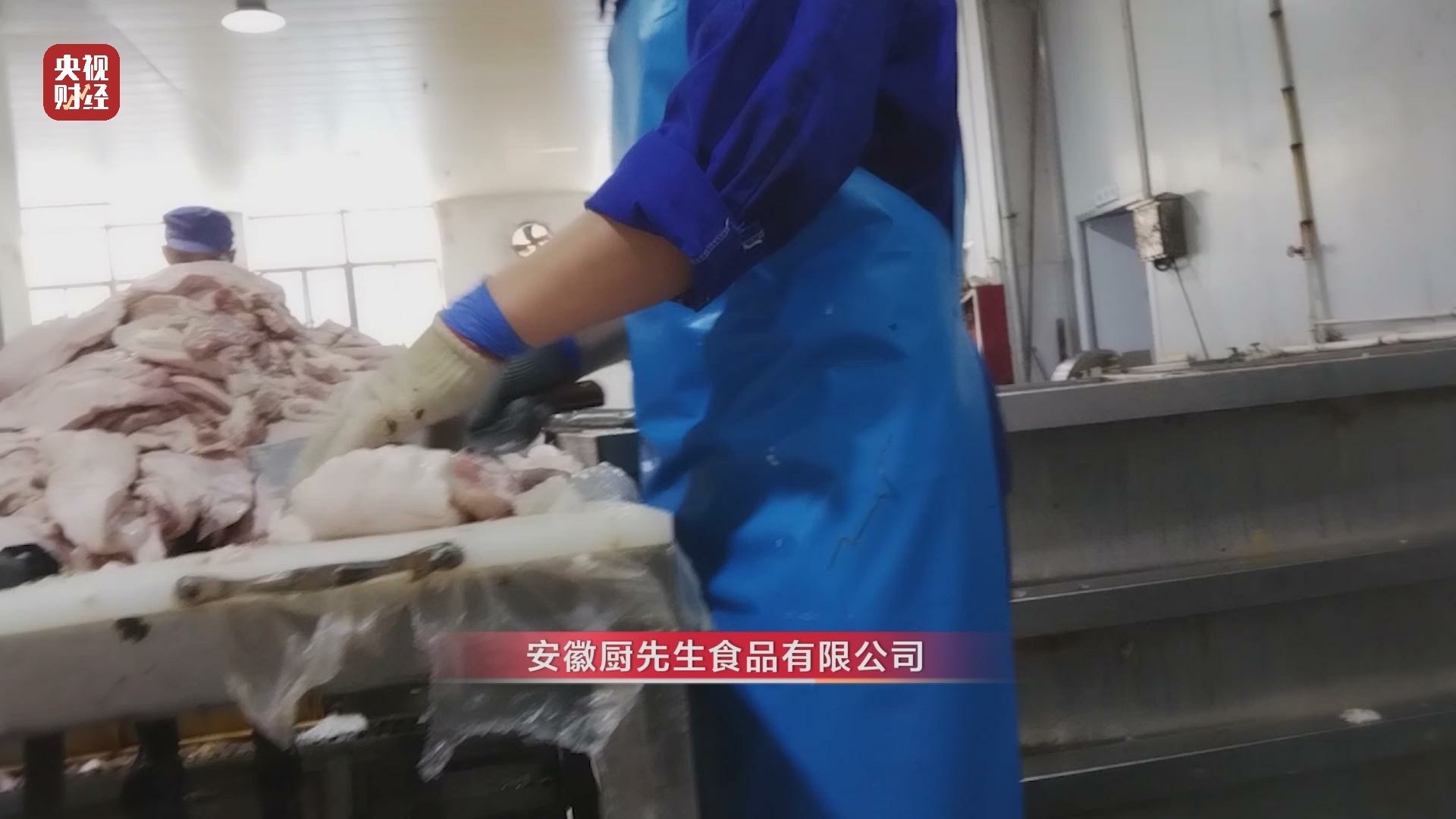 安徽廚先生食品有限公司 工作人員:還是會(huì)留一些腺體,上面不留一點(diǎn)腺體,底下紅肉就被修掉了。