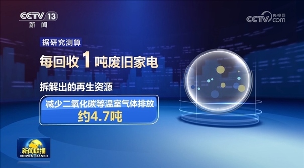 截至目前,我國冰箱、洗衣機、空調(diào)等家電保有量已超過30億臺。每年有1億至1.2億臺廢舊家電被淘汰。2023年,全國廢舊家電回收總量達450萬噸,而據(jù)研究測算,每回收1噸廢舊家電,拆解出的再生資源能夠減少二氧化碳等溫室氣體排放約4.7噸。隨著國家今年新一輪以舊換新政策的啟動,推動汽車、家電等產(chǎn)品的更新?lián)Q代,預(yù)計將釋放萬億元規(guī)模的市場空間。隨著家電家具等耐用消費品制造循環(huán)利用產(chǎn)供銷、上下游協(xié)同聯(lián)動、綜合施策,將有更多消費者和全社會從中受益。