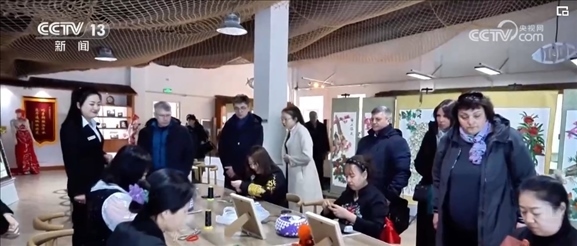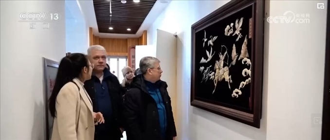 在同江,非物質(zhì)文化遺產(chǎn)魚皮手工藝品也受到俄羅斯游客的喜愛。赫哲族用魚皮制作的手工藝品精美、大氣、寓意美好,展現(xiàn)了中國少數(shù)民族的獨(dú)特文化魅力。游客斯維特拉娜當(dāng)場選購了一幅魚皮畫,準(zhǔn)備帶回俄羅斯。