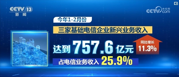 數(shù)據(jù)顯示,2024年1—2月份,三家基礎電信企業(yè)新興業(yè)務收入達到757.6億元,同比增長11.3%,占電信業(yè)務收入的25.9%,其中,云計算和大數(shù)據(jù)收入分別同比增長17.3%和30.3%。截至2月末,三家基礎電信企業(yè)發(fā)展蜂窩物聯(lián)網(wǎng)終端用戶23.64億戶,占移動網(wǎng)終端連接數(shù)比重達57.5%。