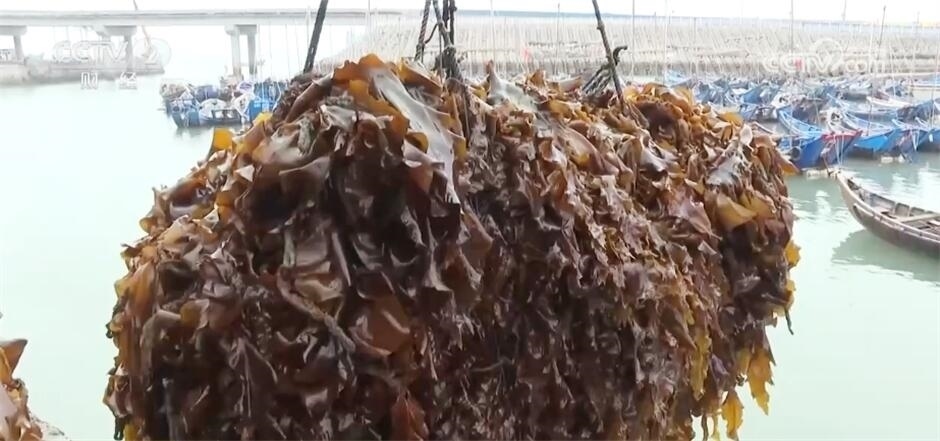 眼下,福建福州連江縣10.3萬畝優(yōu)質(zhì)海帶進入采收期,不少海帶養(yǎng)殖戶搶抓晴好天氣收割海帶,海面上一片熱鬧、繁忙景象。?
