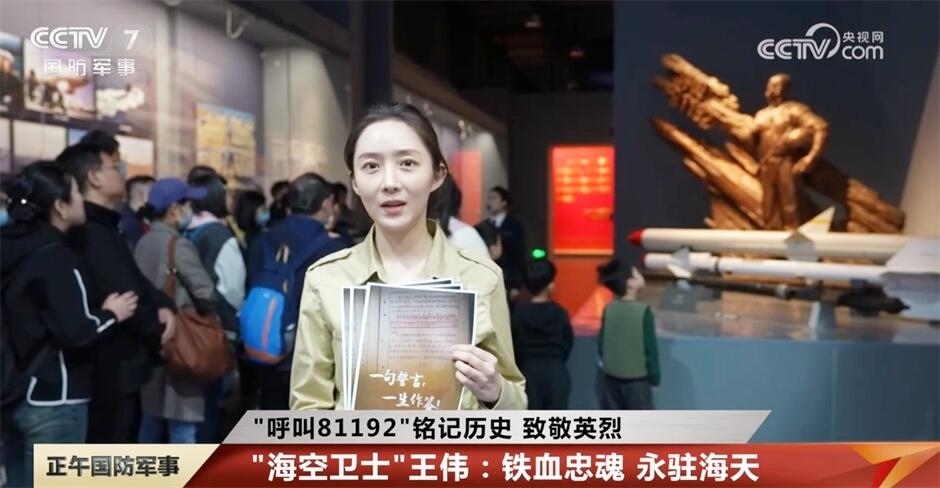 央視網(wǎng)消息:4月1日是“海空衛(wèi)士”王偉犧牲23周年紀(jì)念日,2001年4月1日,海軍航空兵飛行員王偉駕駛著戰(zhàn)機(jī)巡航在海天,突遭外機(jī)大轉(zhuǎn)向撞擊,飛機(jī)墜海,王偉壯烈犧牲。81192是王偉烈士生前所駕駛戰(zhàn)機(jī)的編號(hào),每年的4月1日,“81192”這組數(shù)字都會(huì)刷屏,大家會(huì)用呼喚“81192”返航的方式紀(jì)念英雄。為發(fā)揮愛國(guó)主義教育基地作用,引導(dǎo)青少年銘記海軍英雄,緬懷“??招l(wèi)士”王偉烈士,3月31日上午,海軍博物館開展“呼叫81192”主題活動(dòng),用特別的方式來向王偉烈士寄托哀思。