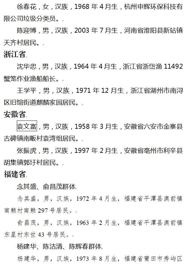 上榜勇士中,有舍棄價值幾十萬元蟹籠海中救人的沈華忠;有在深水中連救兩人的花甲老人程國利;有在斷橋處攔車避免更多事故發(fā)生的黃福林、唐群輝、王國梁群體;有阻止兇犯持刀行兇的醫(yī)生單國際、韋仲謀;有從15米高的橋上跳水救人的外賣小哥陳迎博……更有在水中多次救人英勇犧牲的19歲小伙李政;為搶險救火獻出生命的鄧璞、項姚興、吳祥奇;有進入沼氣井救人不幸遇難的張生賢……勇士們的事跡震撼人心、催人奮進,他們不怕困難和艱險,沖鋒在前、見義勇為,用實際行動傳承和弘揚了中華民族傳統(tǒng)美德,踐行了社會主義核心價值觀。
