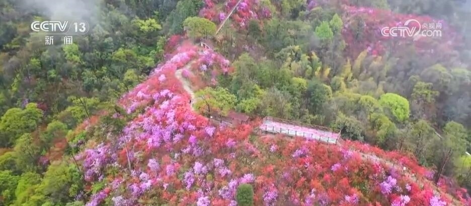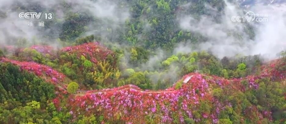 安徽岳西:嶺上開(kāi)遍映山紅 嬌媚馨香繞群山