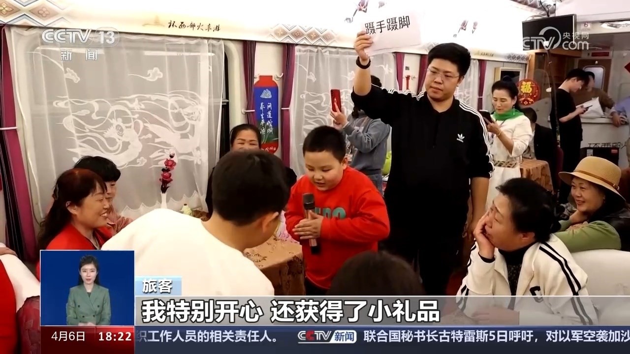 “天水麻辣燙”旅游專列,全列設置豪華軟臥包廂。旅途中,工作人員對天水人文歷史、特色小吃文化等進行專業(yè)講解,旅客現(xiàn)場可以購買當?shù)靥厣巢?,讓旅游從“出發(fā)”開始。