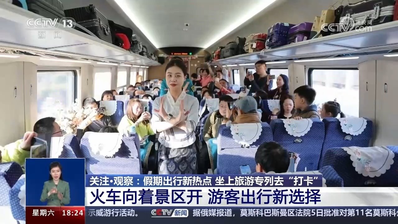 央視網(wǎng)消息:清明春花放,踏青好時節(jié)。坐著火車去旅行,縱跨千山,橫飛萬水,用速度與激情串聯(lián)美景。今年清明假期第一天也就是4月4日,全國鐵路發(fā)送旅客1853.6萬人次,創(chuàng)今年以來單日旅客發(fā)送量新高。以網(wǎng)紅城市、網(wǎng)紅景區(qū)為目的地的客流增幅明顯,各地增開的臨客列車也瞄準了游客“打卡地”。坐上旅游專列去旅行,可以給移步換景的美好出游心愿帶來多少種可能呢?進入今天的關注觀察。