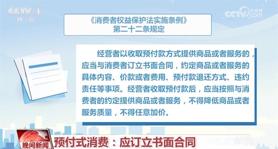 《消費(fèi)者權(quán)益保護(hù)法實(shí)施條例》第二十二條規(guī)定,經(jīng)營(yíng)者以收取預(yù)付款方式提供商品或者服務(wù)的,應(yīng)當(dāng)與消費(fèi)者訂立書面合同,約定商品或者服務(wù)的具體內(nèi)容、價(jià)款或者費(fèi)用、預(yù)付款退還方式、違約責(zé)任等事項(xiàng)。經(jīng)營(yíng)者收取預(yù)付款后,應(yīng)當(dāng)按照與消費(fèi)者的約定,提供商品或者服務(wù),不得降低商品或者服務(wù)質(zhì)量,不得任意加價(jià)。