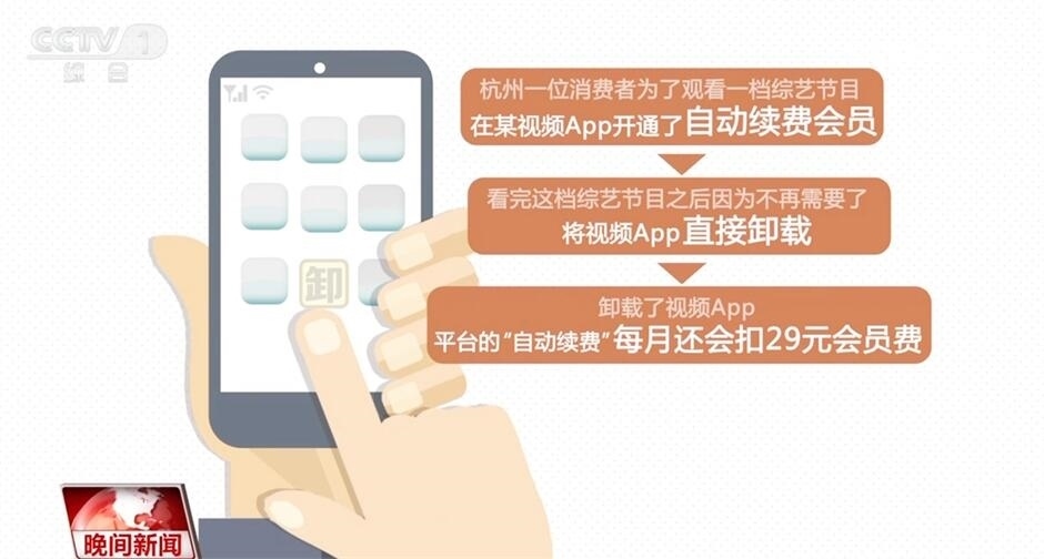 杭州一位消費(fèi)者為了觀看一檔綜藝節(jié)目,在一家視頻App開通了自動(dòng)續(xù)費(fèi)會(huì)員,之后便直接將視頻App卸載。然而,平臺(tái)的“自動(dòng)續(xù)費(fèi)”并沒有終止,每月會(huì)費(fèi)照扣。