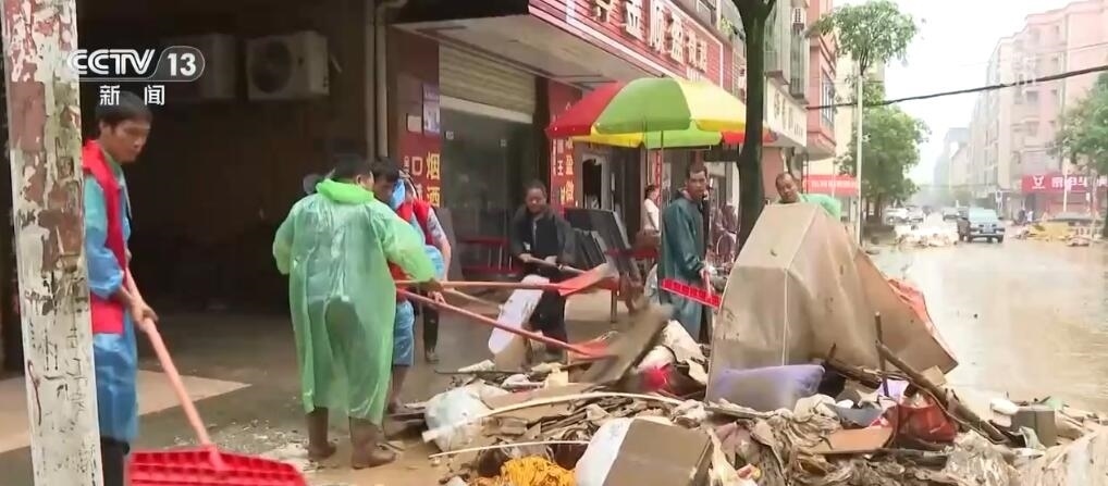 在清遠(yuǎn)英德市浛洸鎮(zhèn),被浸了兩天多的鎮(zhèn)區(qū)已經(jīng)全部退水,當(dāng)?shù)亟M織黨員干部投入清淤工作,同時(shí)加緊時(shí)間進(jìn)行清洗和消殺。