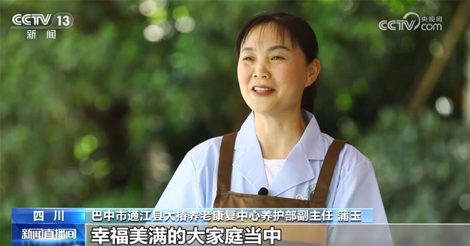 四川省巴中市通江縣大椿養(yǎng)老康復(fù)中心養(yǎng)護(hù)部副主任蒲玉稱:“在護(hù)理的過程當(dāng)中,我會通過情緒安撫,說一些老年人喜歡的話題,引導(dǎo)老人飲食。”