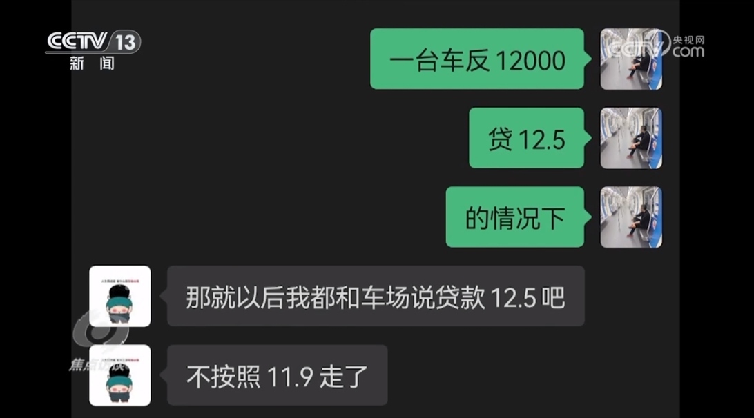 所謂物流公司內(nèi)部的一段聊天記錄顯示,一位司機(jī)購買的一臺(tái)車,物流公司的人和貸款公司一起運(yùn)作,把原本應(yīng)該是11.9萬元的貸款總額提高到12.5萬元,物流公司人員從中可以獲取12000元的返利。
