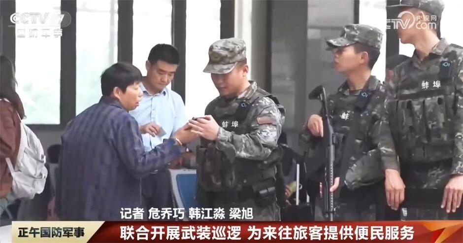在安徽蚌埠火車(chē)站,武警官兵與公安特警聯(lián)合開(kāi)展武裝巡邏,主動(dòng)加大對(duì)重點(diǎn)區(qū)域的實(shí)時(shí)監(jiān)控和巡邏力度,在維護(hù)秩序的同時(shí),官兵還耐心為廣大旅客答疑解惑,提供便民服務(wù)。