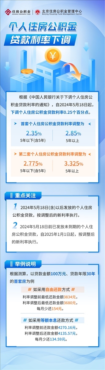5月18日,北京住房公積金管理中心發(fā)布消息,5月18日起下調(diào)個(gè)人住房公積金貸款利率0.25個(gè)百分點(diǎn)。