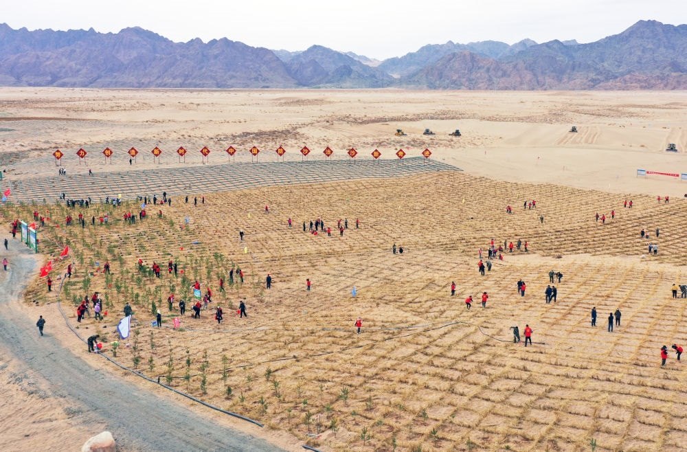 鄂爾多斯市副市長額登畢力格表示,鄂爾多斯市統(tǒng)籌生態(tài)保護(hù)和新能源開發(fā),集中連片打造庫布其北緣鎖邊林帶、庫布其腹地風(fēng)沙路徑阻隔帶,毛烏素上風(fēng)口阻隔帶、下風(fēng)口阻沙帶,庫布其沙漠“光伏長城”和毛烏素沙地風(fēng)電光伏“一廊多點(diǎn)”等標(biāo)志性工程,全年計(jì)劃完成沙化土地治理500萬畝。