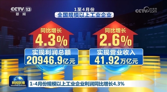 1—4月份規(guī)模以上工業(yè)企業(yè)利潤同比增長4.3%