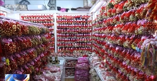 央視網(wǎng)消息:臨近端午節(jié),在浙江義烏,帶有端午元素的五彩繩、手鏈、香囊等各色商品銷售火爆,其中一些蘊(yùn)含龍?jiān)?、好寓意的商品更是受到市?chǎng)的歡迎。
