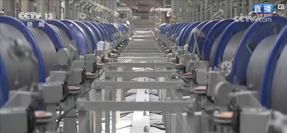 相對普通鋼簾線來說,這樣的鋼絲組成的鋼簾線強(qiáng)度更高,可以減少輪胎里面橡膠原料的使用,減輕輪胎整體的重量。這里的工作人員介紹,在鋼簾線制造過程中,工藝流程自動化程度低一直是行業(yè)“痛點”?,F(xiàn)在,企業(yè)通過人工智能、數(shù)字化,實現(xiàn)了從原材料進(jìn)廠到成品出庫全流程的自動化生產(chǎn)。