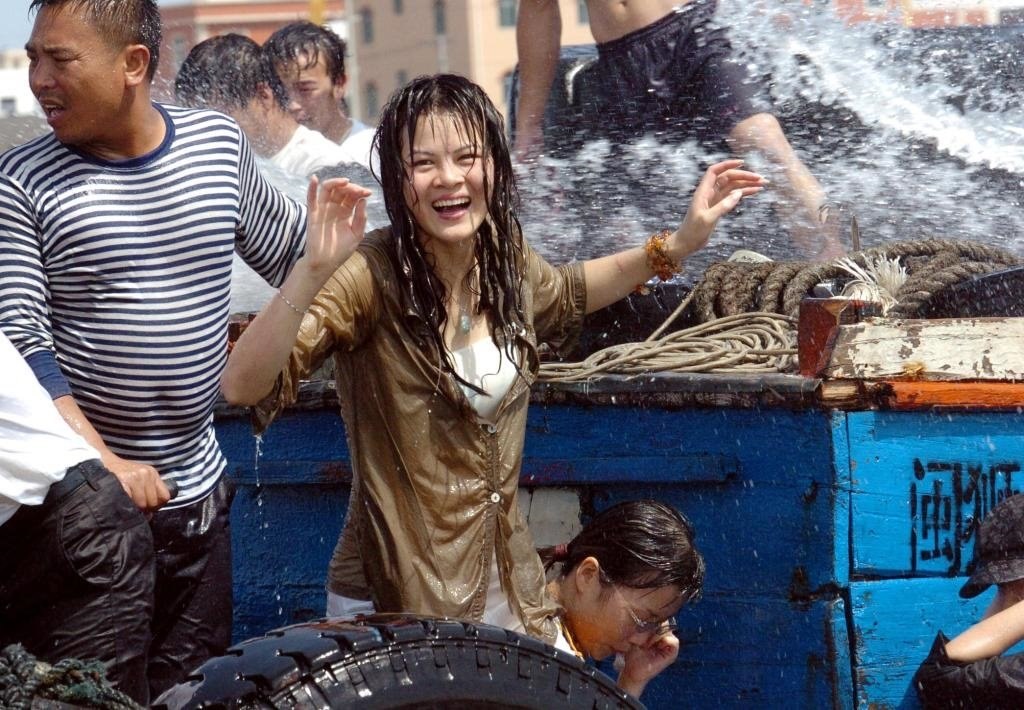2005年6月11日,在福建省石獅市蚶江海域,一名女子參加一年一度的傳統(tǒng)端午潑水節(jié)活動(dòng)。