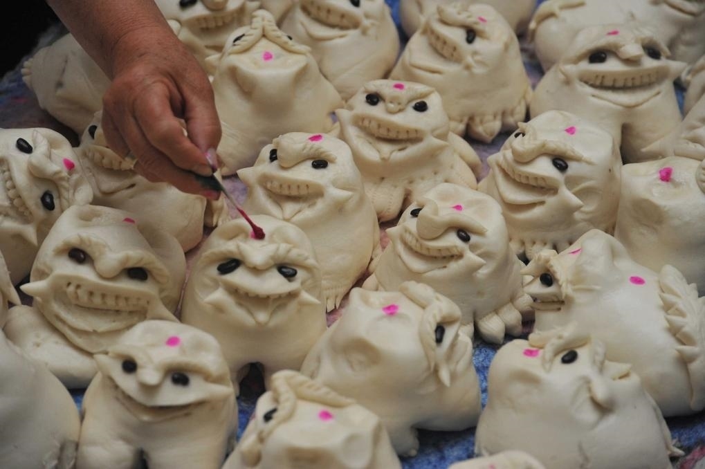 2016年6月7日,在山西晉南運(yùn)城市新絳縣澤掌村一家蒸饃店,一名村民在給蒸好的“老虎饃”“點(diǎn)紅”。端午節(jié)臨近,山西晉南地區(qū)的城鄉(xiāng)居民開始制作或購(gòu)買老虎造型的晉南花饃“老虎饃”,用來(lái)在端午節(jié)敬奉先祖,祈福平安吉祥。晉南花饃已入選國(guó)家級(jí)非物質(zhì)文化遺產(chǎn)名錄。