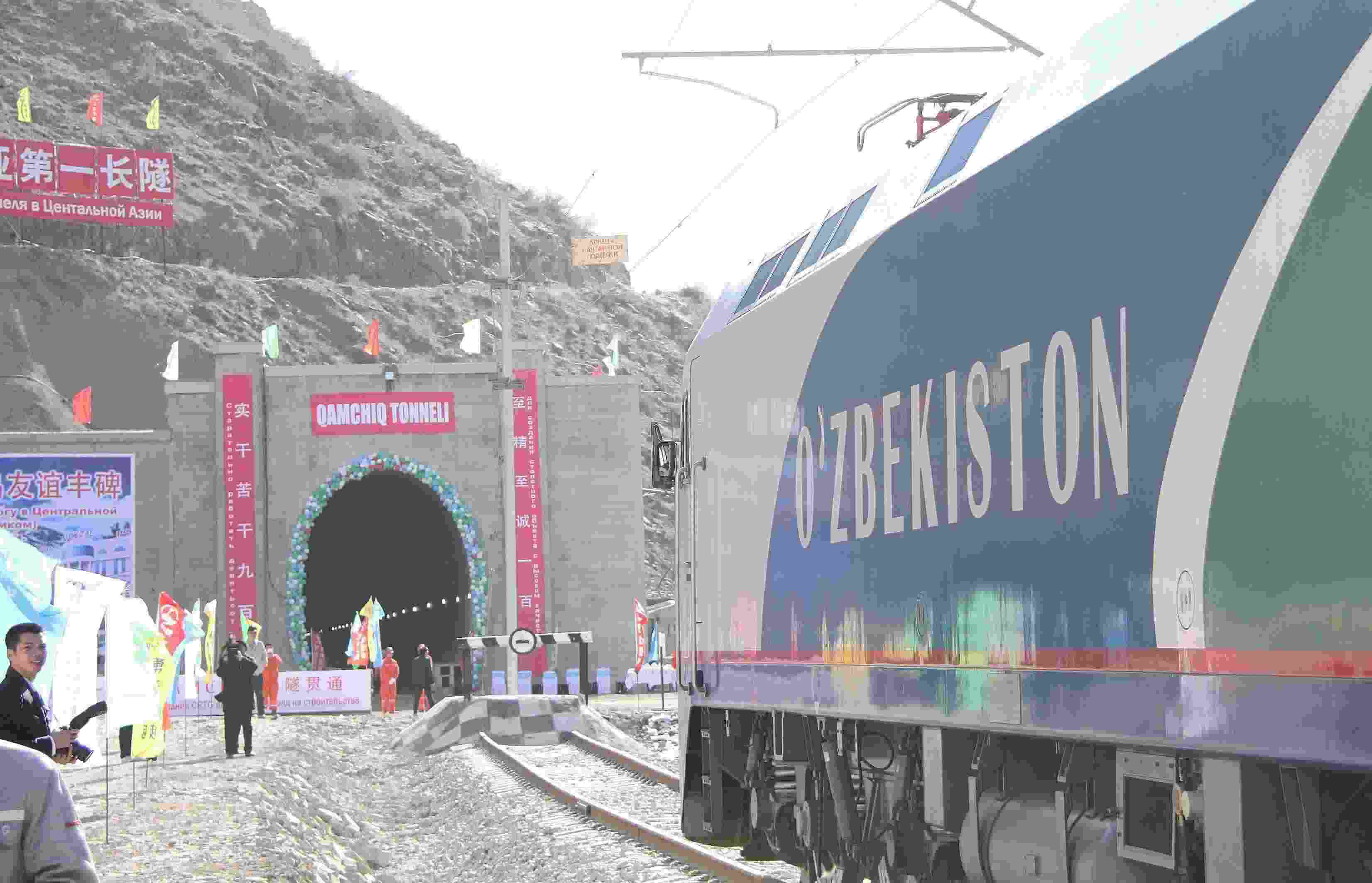 △ 2016年2月27日,一列專列停在烏茲別克斯坦安格連至琶布鐵路甘姆奇克隧道進(jìn)口。甘姆奇克隧道是中吉烏鐵路的重要一環(huán),對(duì)促進(jìn)烏茲別克斯坦經(jīng)濟(jì)社會(huì)發(fā)展和共建“一帶一路”倡議的實(shí)施具有重大意義。