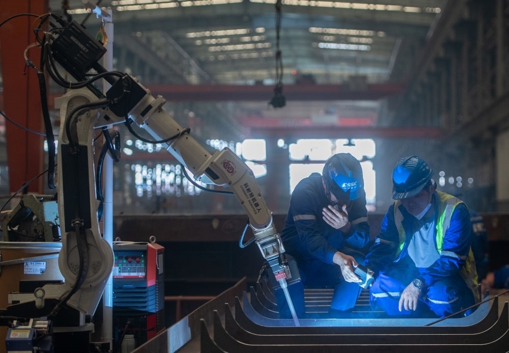 2024年5月16日,工作人員在湖北省武漢市新洲區(qū)武昌船舶重工集團有限公司查看焊接機器人焊接的焊縫。近年來,該公司圍繞新型公務船、高端海工船、中小型綠色智能油化船和支線集裝箱船等主建船型,積極推進數(shù)字化轉型與智能制造,助力航運高質量發(fā)展。