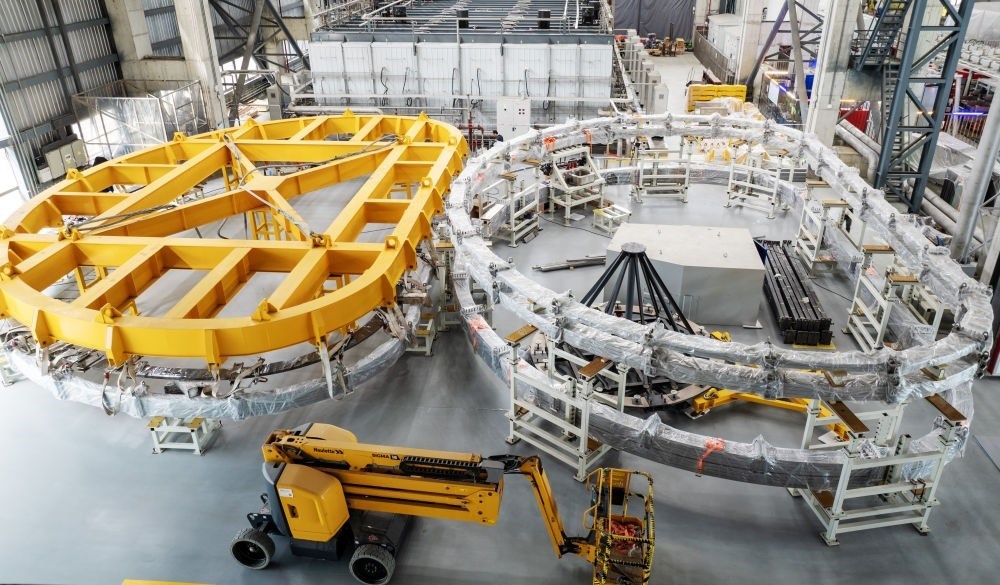 2024年5月27日在聚變堆主機關鍵系統(tǒng)綜合研究設施(CRAFT)園區(qū)內拍攝的TF超導線圈生產線(無人機照片)。該研究設施將為未來中國聚變實驗堆、工程堆的設計建設,搭建參數(shù)高、性能全、功能完備的綜合性研究及測試平臺。