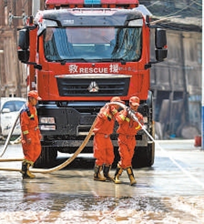 6月17日,消防人員在福建省龍巖市武平縣象洞鎮(zhèn)開(kāi)展救援。周楊東攝(新華社發(fā))