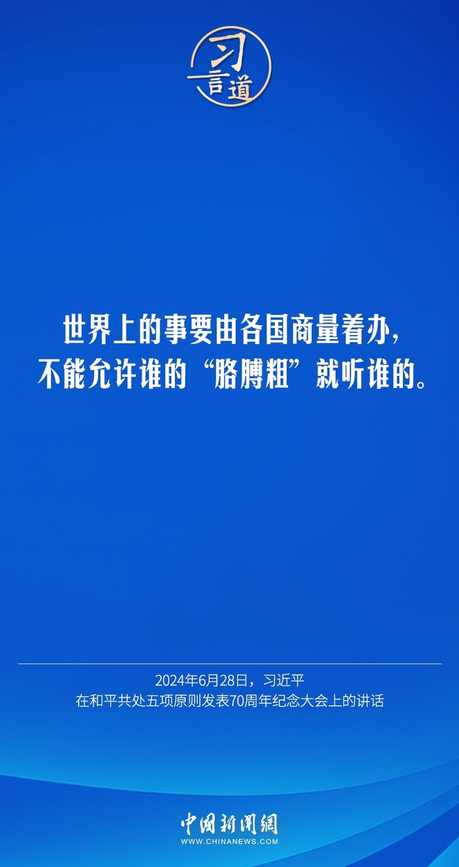 6月28日,國家主席習(xí)近平在北京人民大會堂出席和平共處五項(xiàng)原則發(fā)表70周年紀(jì)念大會并發(fā)表重要講話。習(xí)近平指出——