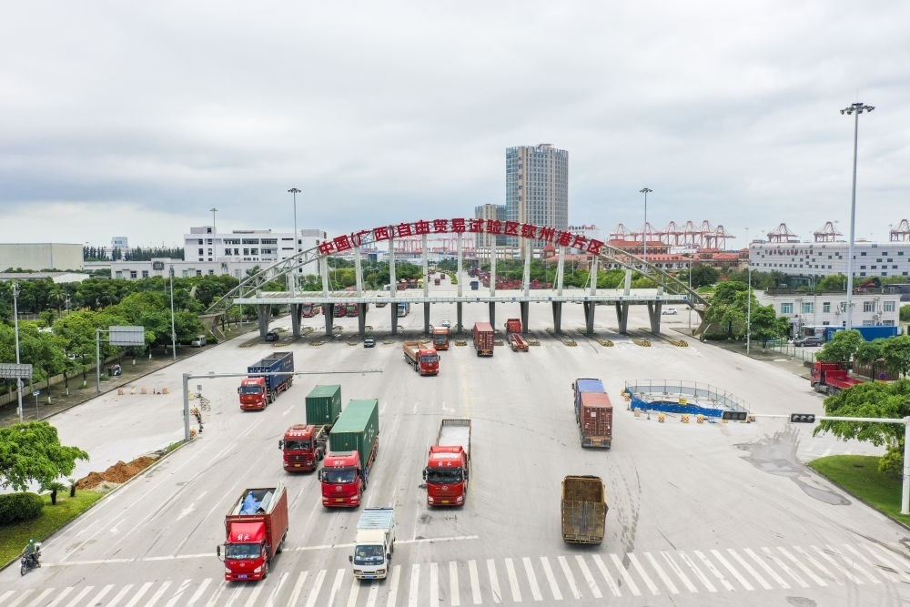 中國(廣西)自由貿(mào)易試驗區(qū)欽州港片區(qū)(2024年5月20日攝,無人機照片)。聚焦面向東盟、服務(wù)陸海新通道、沿邊開放三大特色,開展差異化探索和特色制度創(chuàng)新,讓中國(廣西)自由貿(mào)易試驗區(qū)成為我國面向東盟開放發(fā)展的前沿。