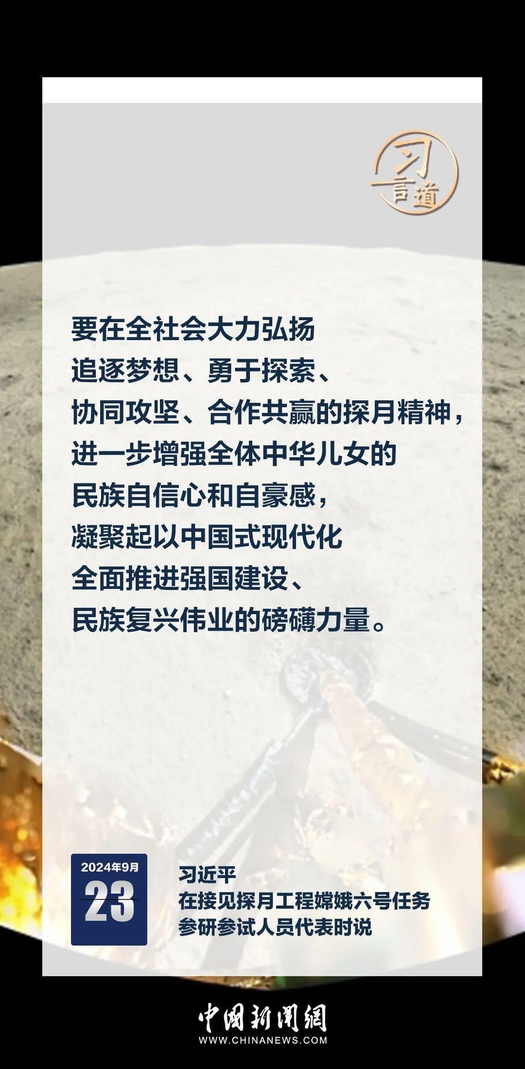 中共中央總書記、國家主席、中央軍委主席習(xí)近平23日在人民大會(huì)堂接見探月工程嫦娥六號(hào)任務(wù)參研參試人員代表時(shí)發(fā)表重要講話。習(xí)近平指出——