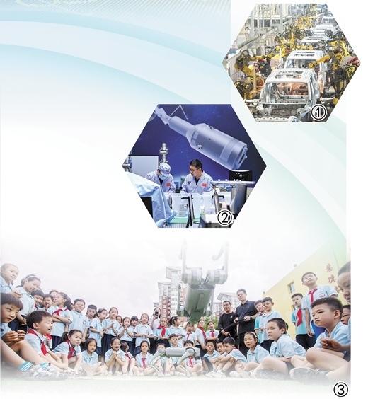 圖①:湖北武漢經(jīng)開區(qū)的嵐圖汽車電動(dòng)化焊裝車間,機(jī)器人正在流水線上作業(yè)。 新華社記者 肖藝九攝 圖②:中國(guó)科學(xué)院空間光學(xué)系統(tǒng)在軌制造與集成重點(diǎn)實(shí)驗(yàn)室的科研人員在進(jìn)行科研工作。 新華社記者 許 暢攝 圖③:河北邯鄲市復(fù)興區(qū)前進(jìn)小學(xué)的學(xué)生們?cè)谟^看機(jī)器狗表演。聶長(zhǎng)青攝(人民視覺)