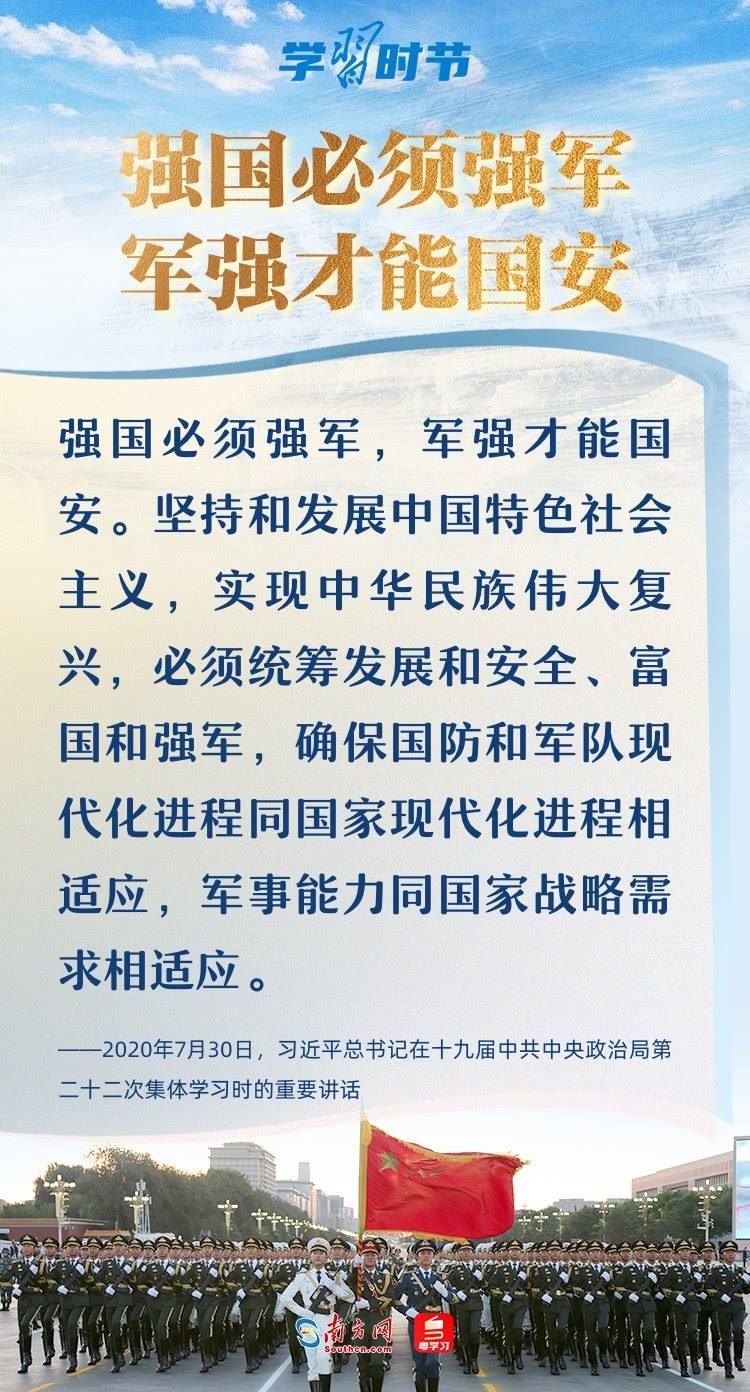 強(qiáng)國(guó)必須強(qiáng)軍,軍強(qiáng)才能國(guó)安。黨的十八大以來,以習(xí)近平同志為核心的黨中央領(lǐng)導(dǎo)軍隊(duì)和國(guó)防建設(shè),開啟強(qiáng)軍興軍新征程,形成了習(xí)近平強(qiáng)軍思想,指引人民軍隊(duì)朝著實(shí)現(xiàn)新時(shí)代強(qiáng)軍目標(biāo)、全面建成世界一流軍隊(duì)奮勇前行。在八一建軍節(jié)到來之際,讓我們一起回顧總書記那些振奮人心的強(qiáng)軍話語。