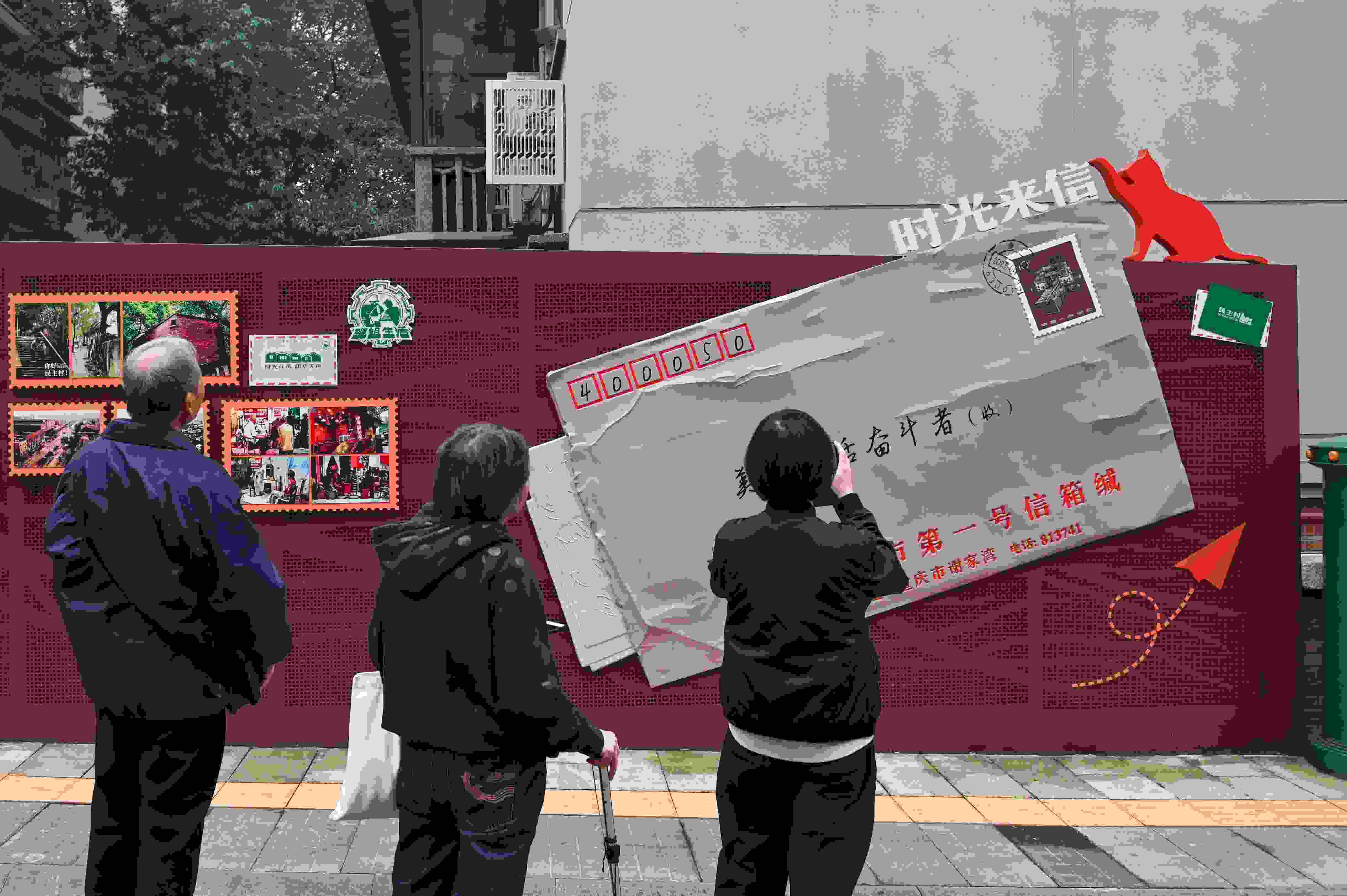 在重慶市九龍坡區(qū)民主村社區(qū),一封寄給“美好生活?yuàn)^斗者”的巨大信封,幾乎鋪滿一面紅色的墻。市井煙火氣與新潮現(xiàn)代的時(shí)尚范兒融合交織,讓這里成為新晉網(wǎng)紅打卡地。