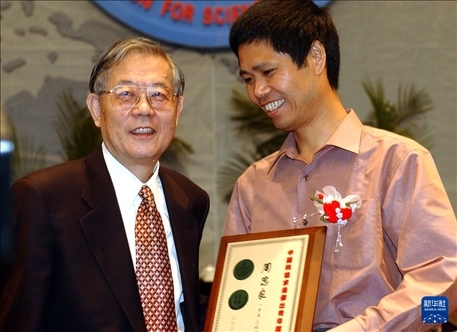 2003年9月13日,在中國科學技術協(xié)會2003年學術年會開幕式上,周光召同志為周忠良(右)等15人頒發(fā)中國科協(xié)“求是杰出青年獎”。