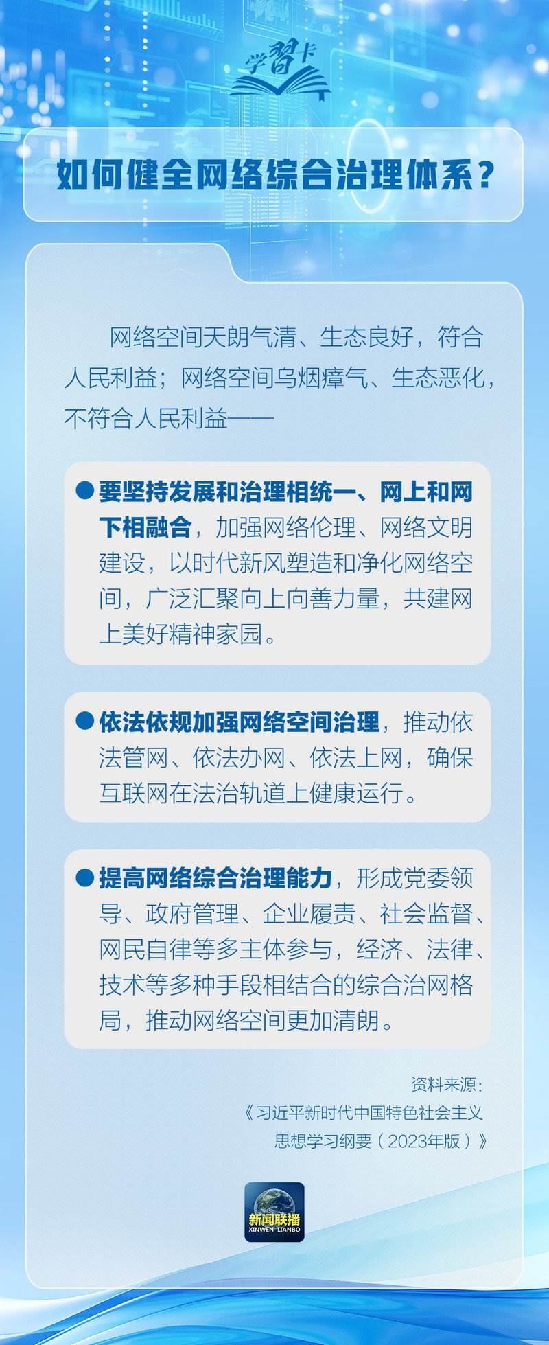 習(xí)近平總書記在《關(guān)于〈中共中央關(guān)于進一步全面深化改革、推進中國式現(xiàn)代化的決定〉的說明》中強調(diào)要健全網(wǎng)絡(luò)綜合治理體系。