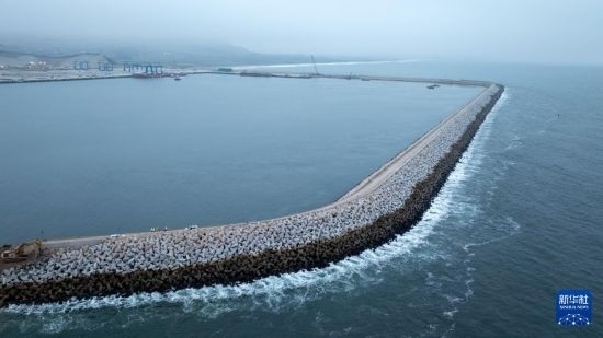 由中企控股和投資開發(fā)的錢凱港位于秘魯首都利馬以北的錢凱灣內(nèi)。從空中俯瞰,約2.6公里長的防波堤像巨臂一般環(huán)抱住碼頭設(shè)施,以阻擋太平洋海浪的侵蝕。